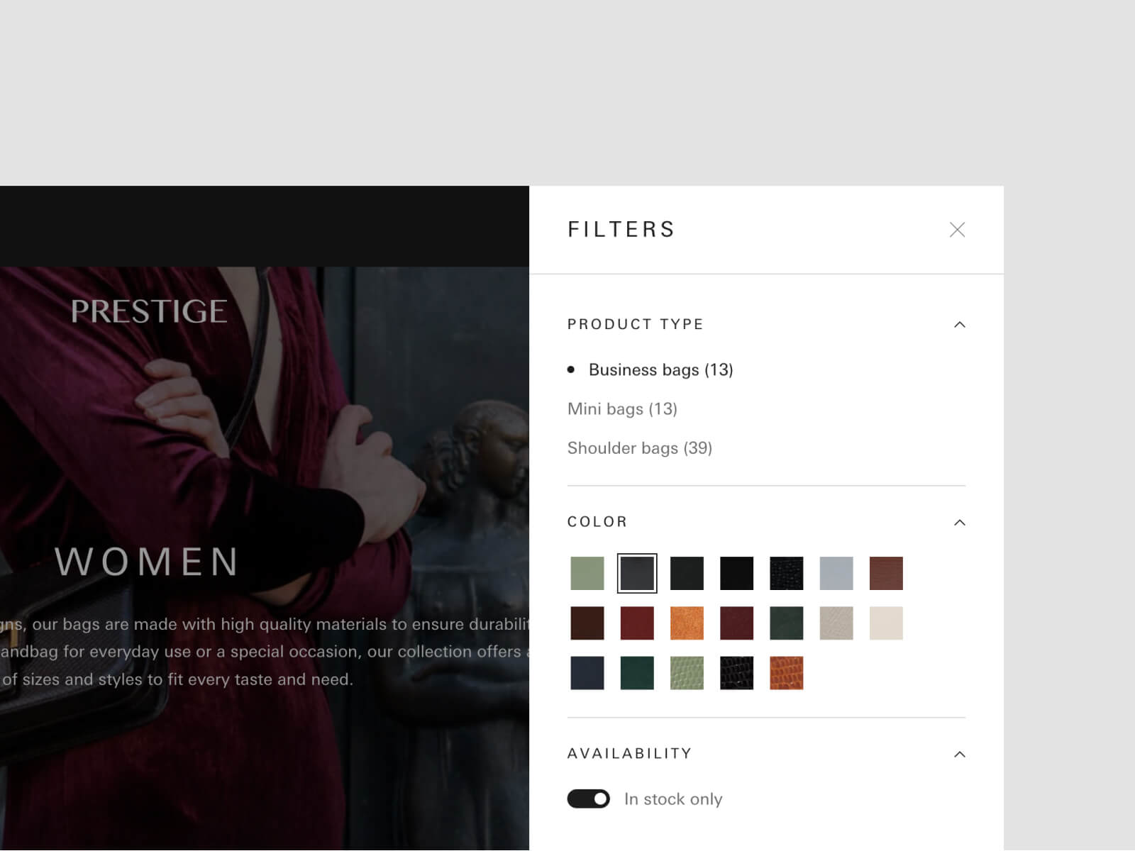 Make it easy for your customers to browse through your products with a powerful filtering system and adapt the layout of your collection.