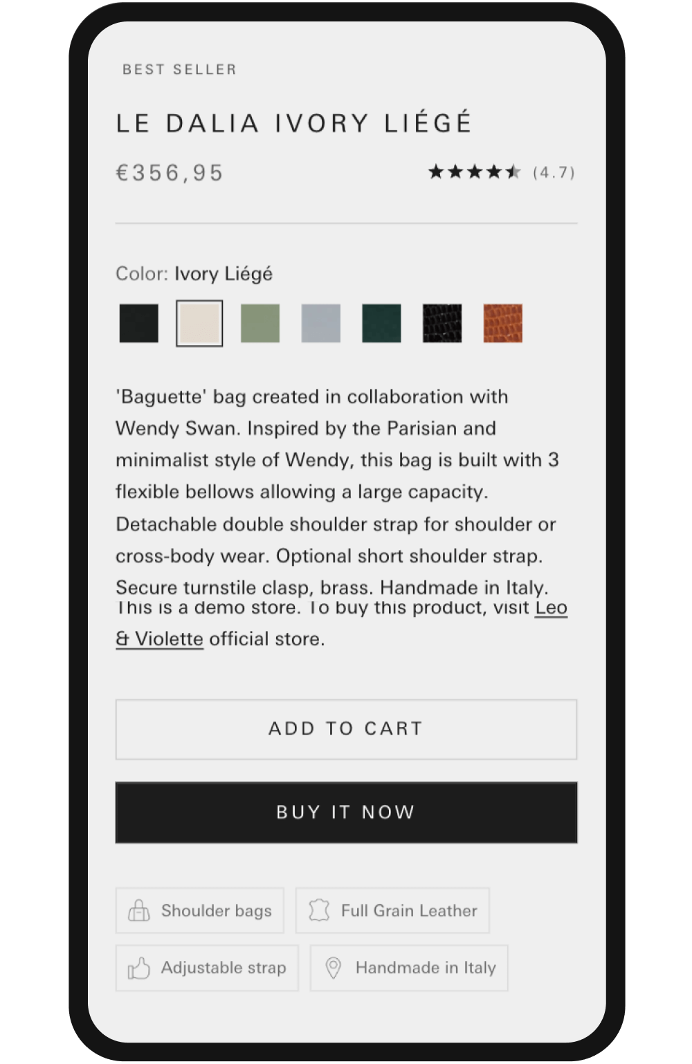 Create an engaging buyer experience with subtle yet elegant animations and apparition effects.