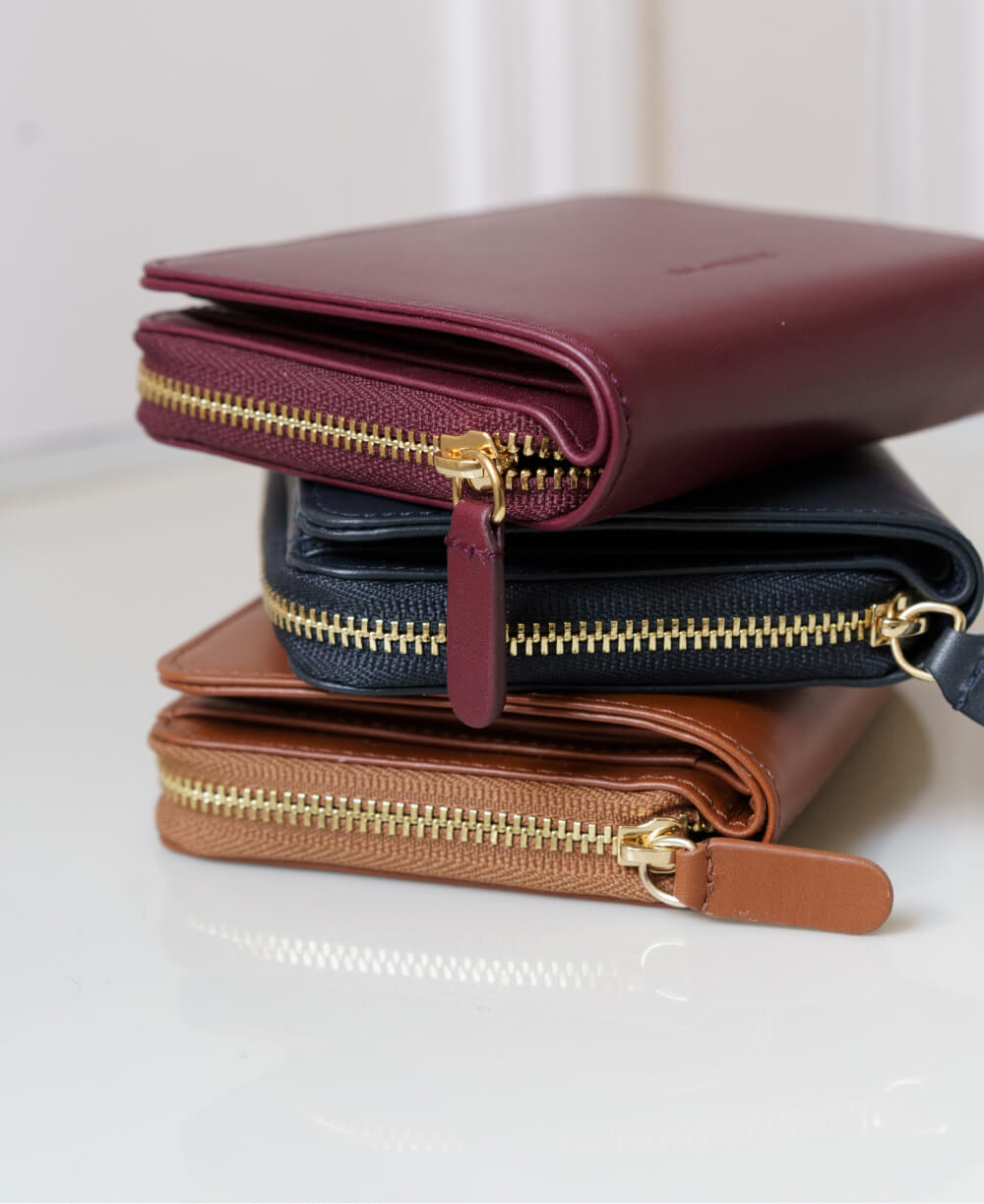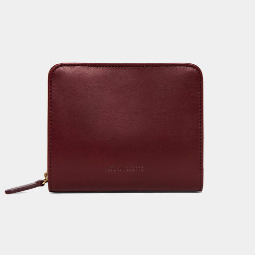 BurgundyWallet with compartments for cards and coins. Slips into all your bags. Slot for French identity card. Leather lining. Heat embossed logo.
