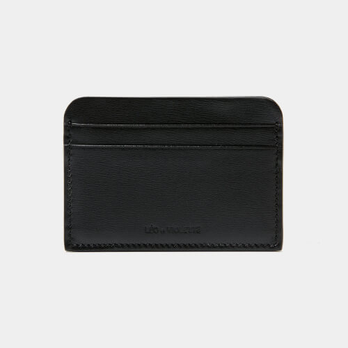 Black LiégéDouble-sided Card Holder with central slot. Leather lining. Total capacity of 9 cards. Logo gilded with gold leaf or hot embossed.