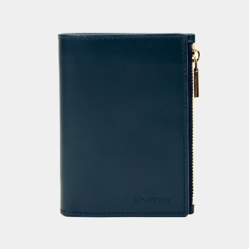 NavyWallet with zipped compartment. Leather lining. Total capacity of 6 cards and two additional compartments. Bill slot and special slot for ID card. Heat embossed logo.